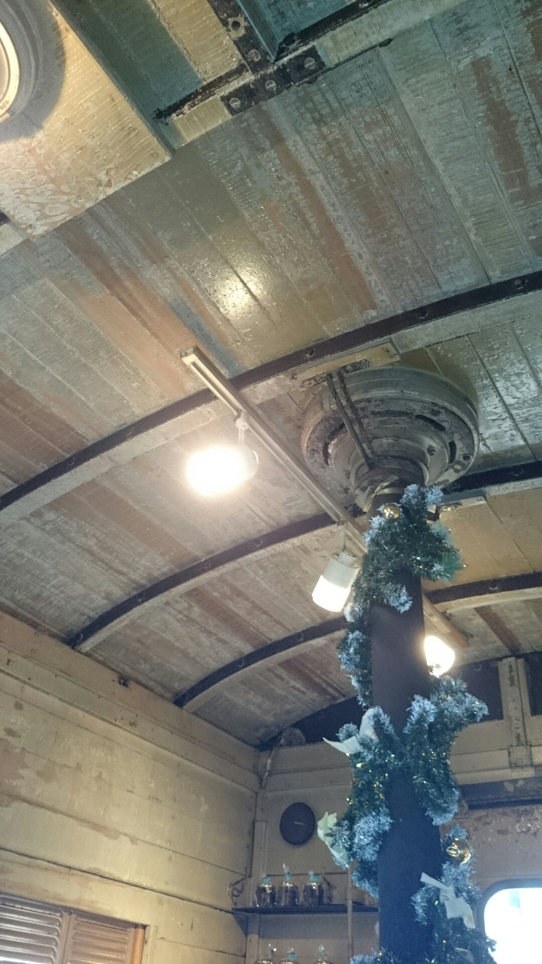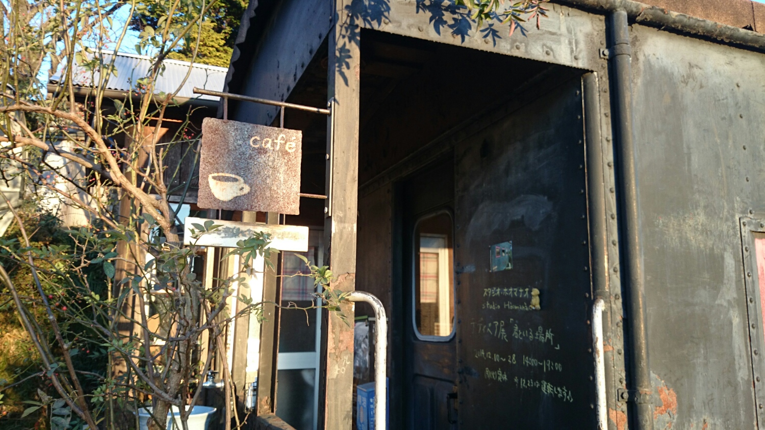 古い電車?機関車?の車体を使った不思議な空間。