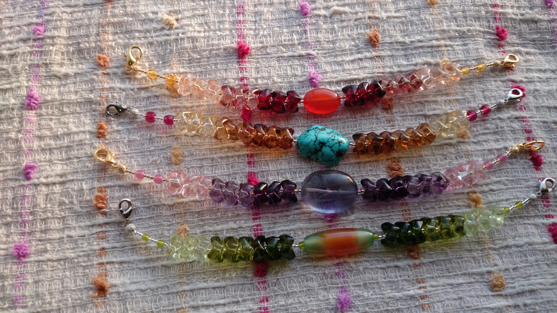 天然石を真ん中に、サイドはガラスビーズをあしらいました。
