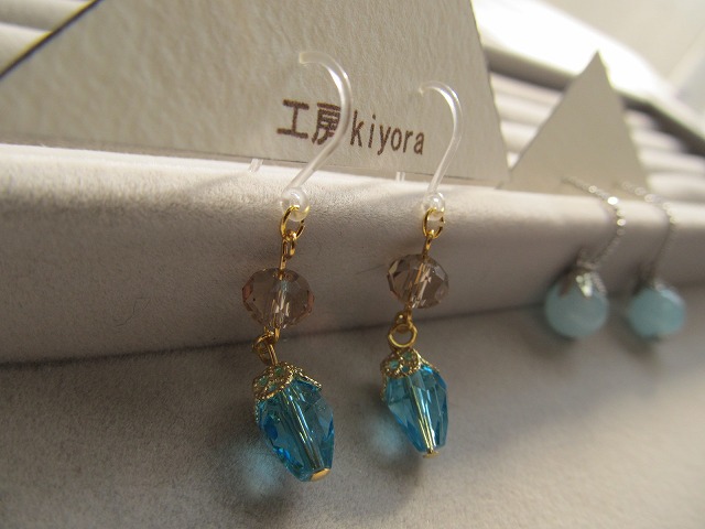 いたってノーマルなピアス。これは樹脂フックなのでアレルギーをお持ちのお嬢様対策。