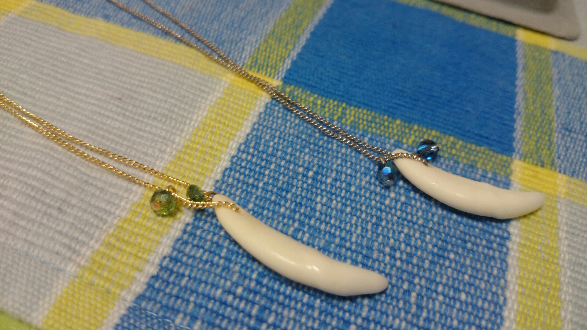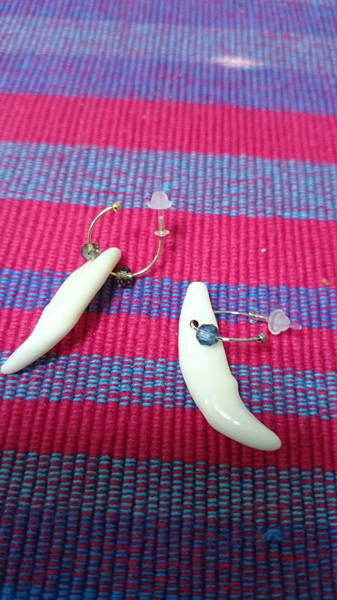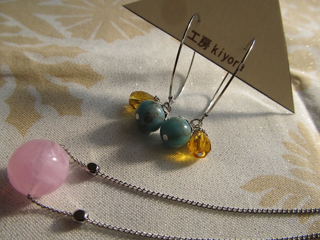 ネックレスもピアスも各1点限り。素材がもう手に入らないかと思われるので売り切り終了となります。各2000円。
