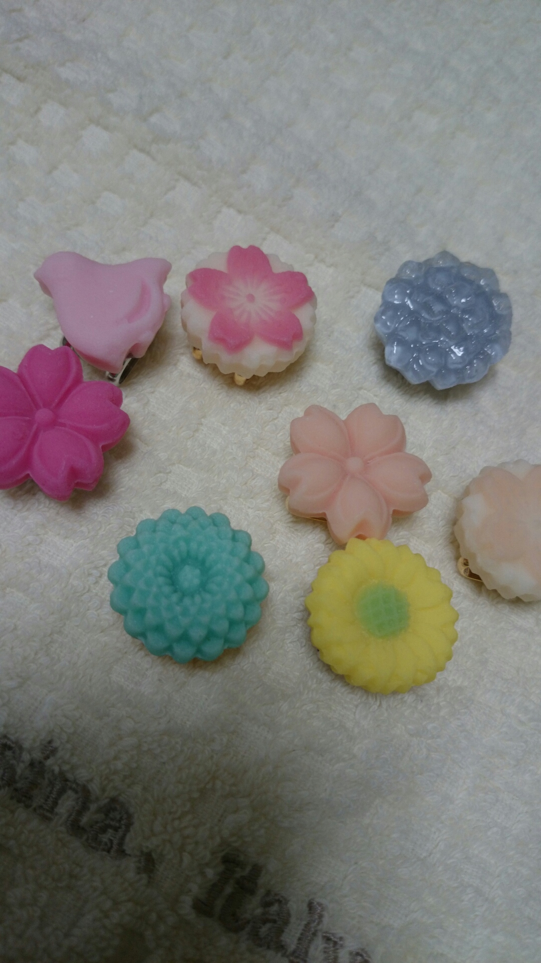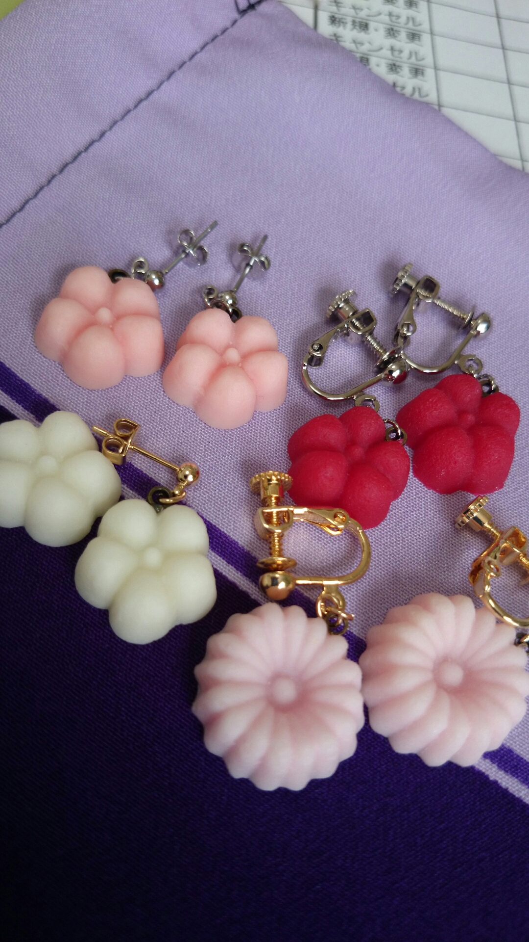 お干菓子のような小さなピアスとイヤリング。これもペア売りですが、今回は写ってる分だけです。