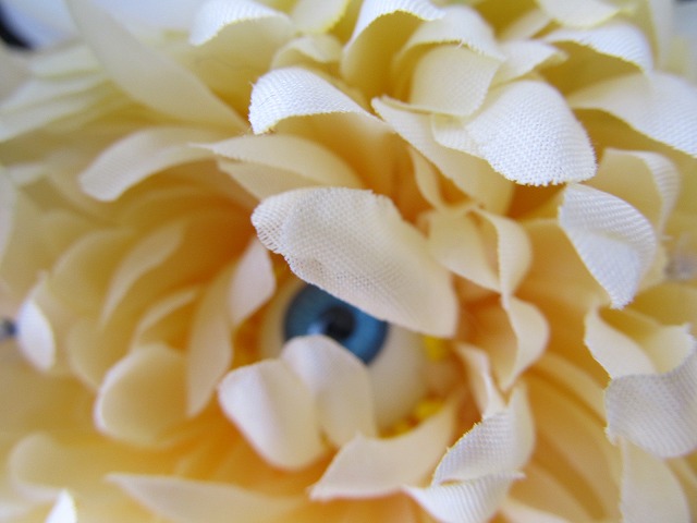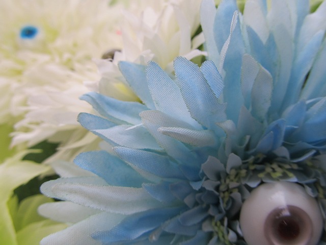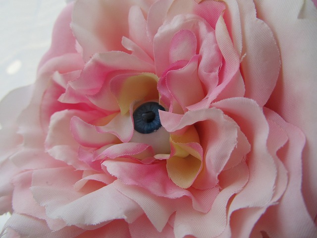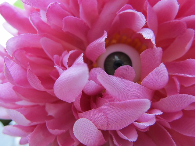 目玉のコサージュ、めだまんコサージュも一点ものでございます。