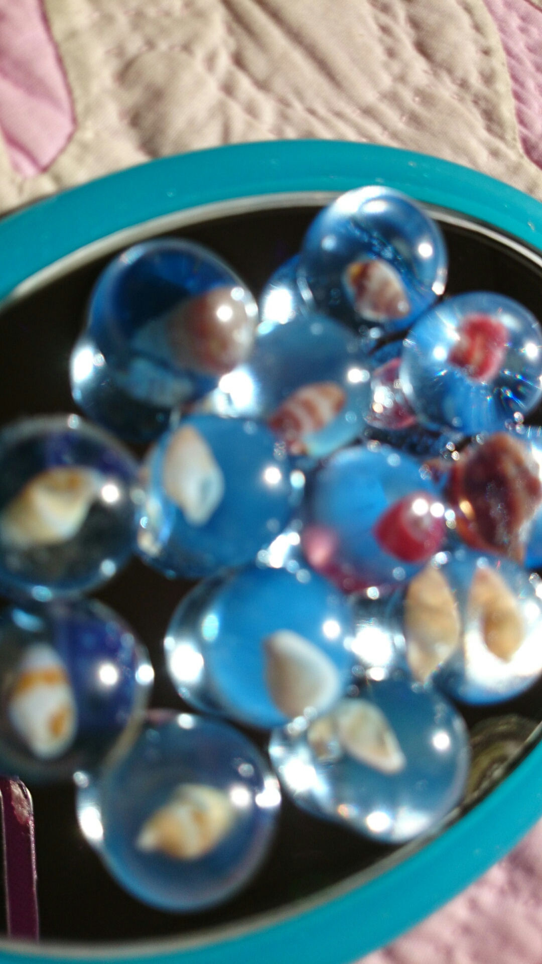 蛍貝や桜貝や宝貝や筵貝を閉じ込めてあります。