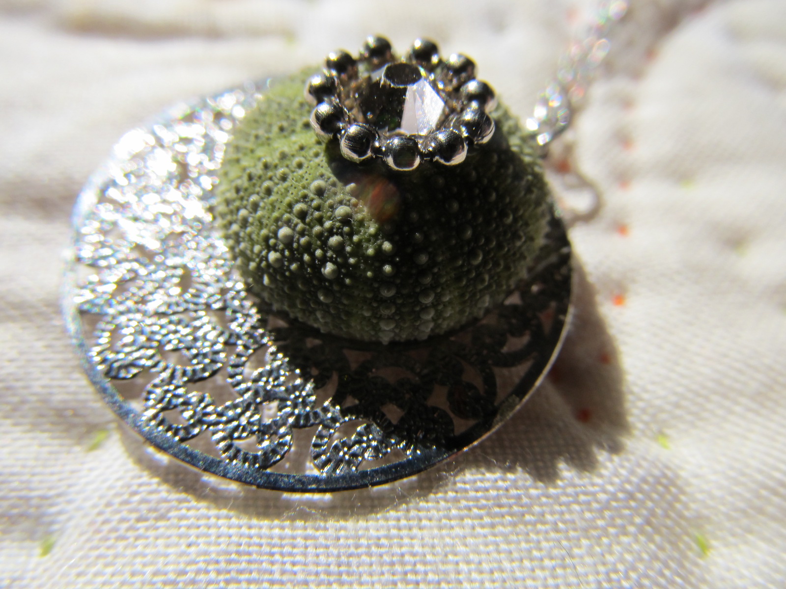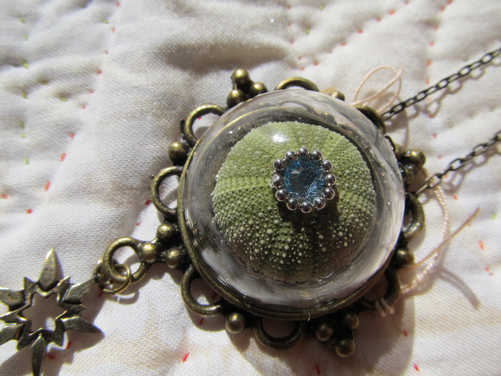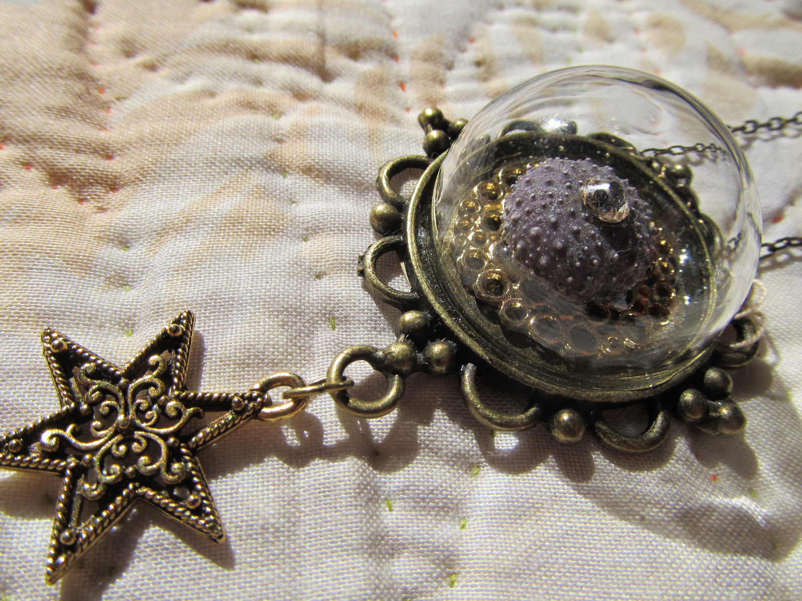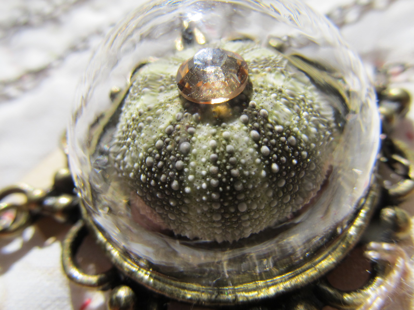 ウニをガラスドームに閉じ込めたペンダント。