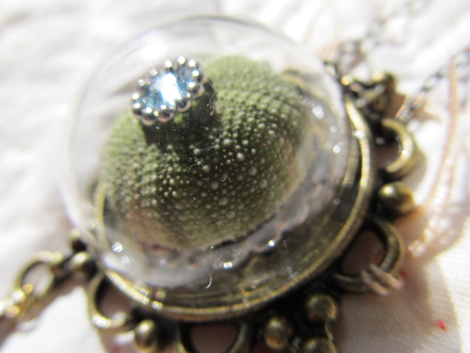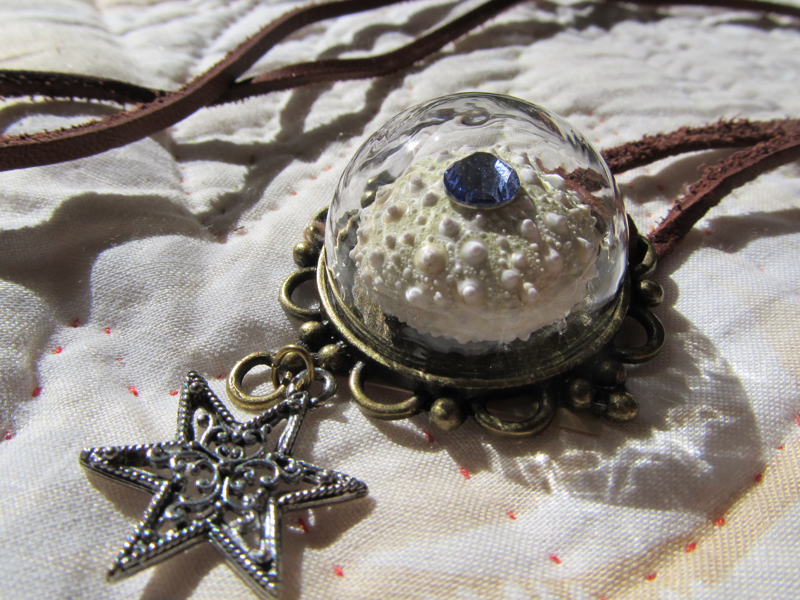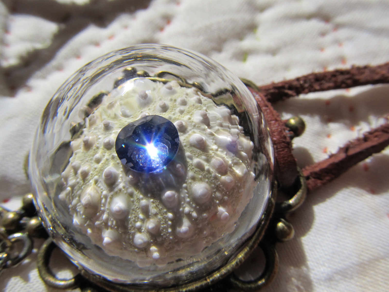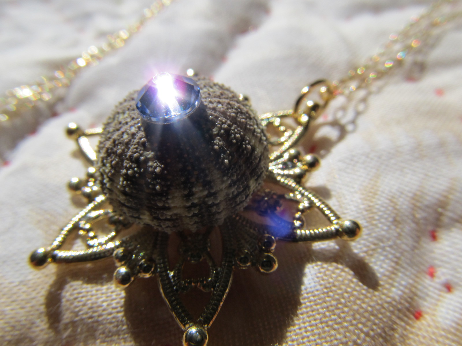 ウニをガラスドームに閉じ込めたペンダント。
