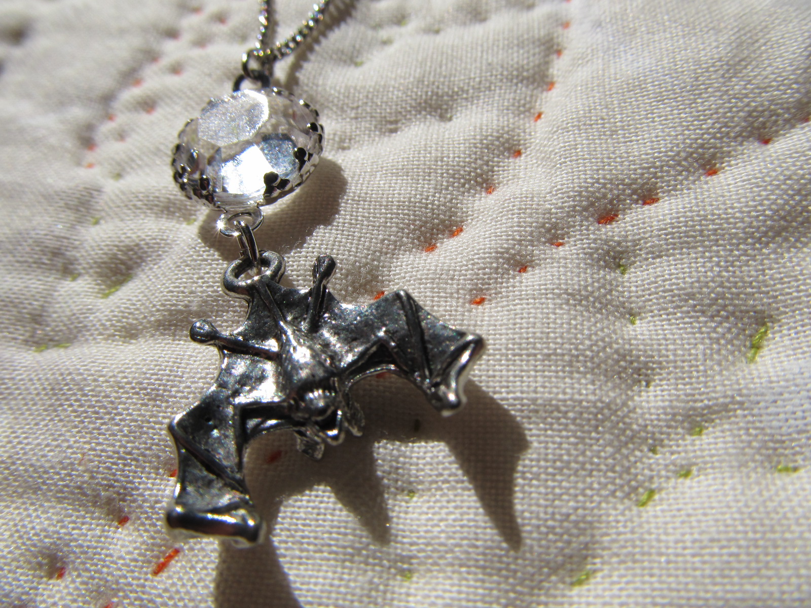 コウモリのチャームのネックレス。