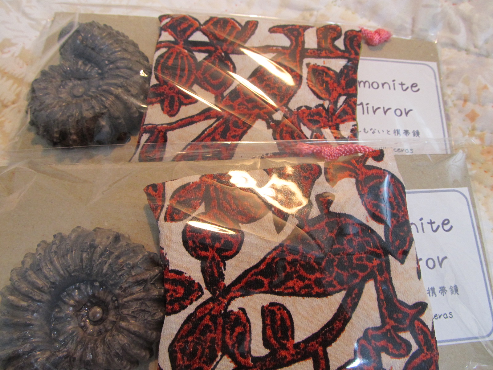 裏の鏡はどちらのアンモナイトのも同じ大きさ、同じ仕様です。