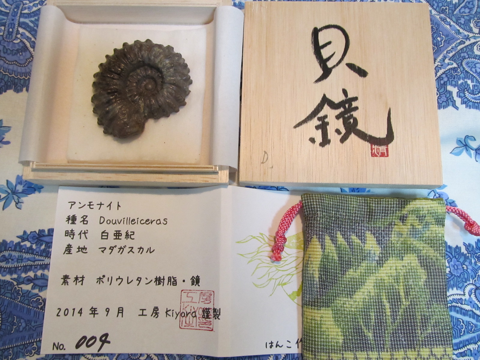あ、アンモナイトミラー、桐箱入りを2種類各2個、在庫処分で2000円で。